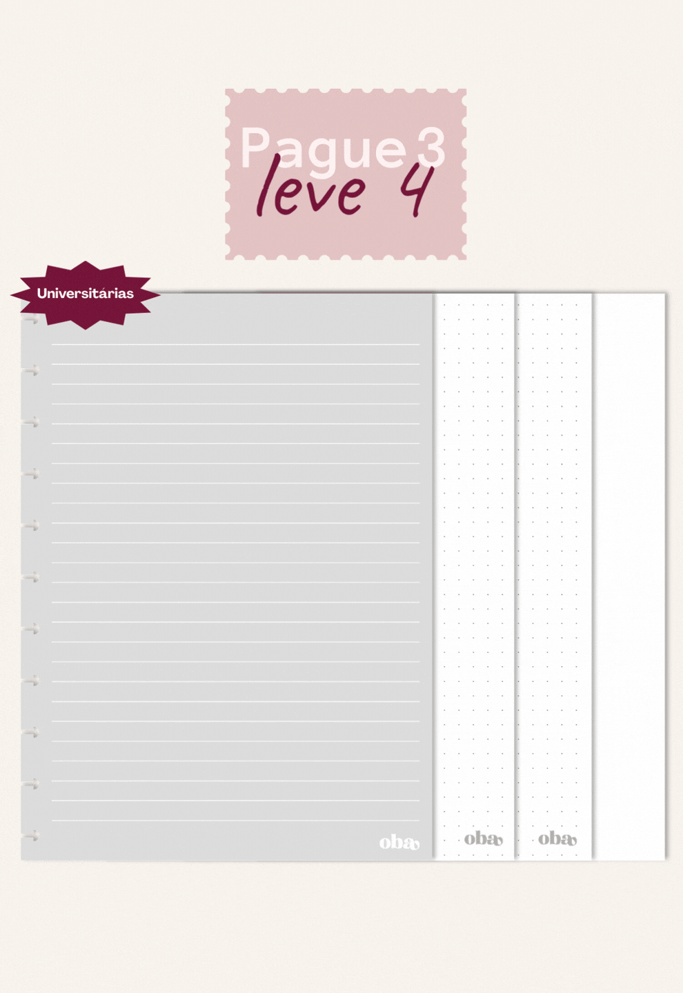 Obrigatório Passo 4 Miolo 4. Esse passo é ObrigatórioFeito para você personalizar ou repor as folhas do seu Oba. Você escolhe o que faz mais sentido para você e para sua rotina.