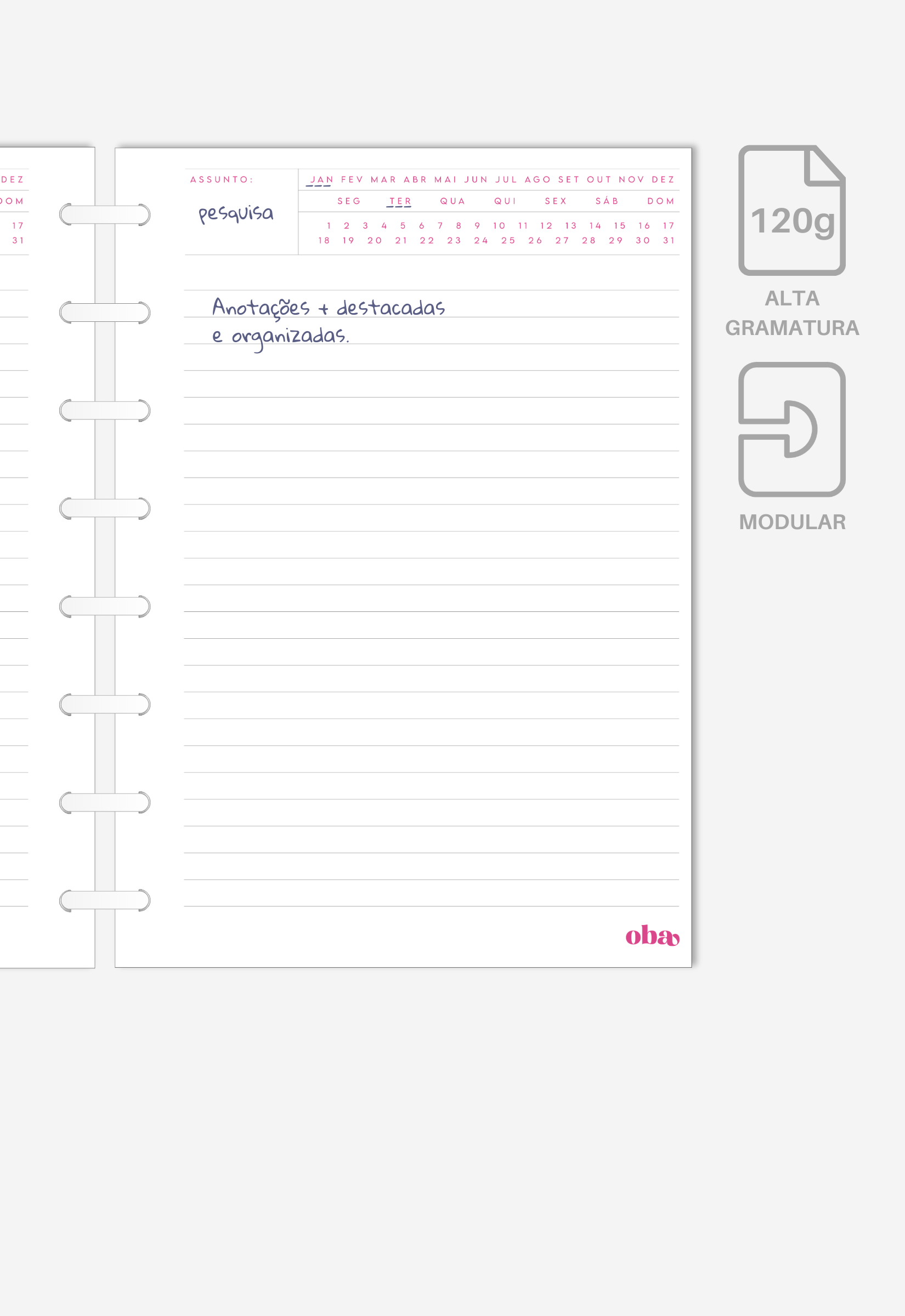 Feito para você personalizar ou repor as folhas do seu Oba. Você escolhe o que faz mais sentido para você e para sua rotina.